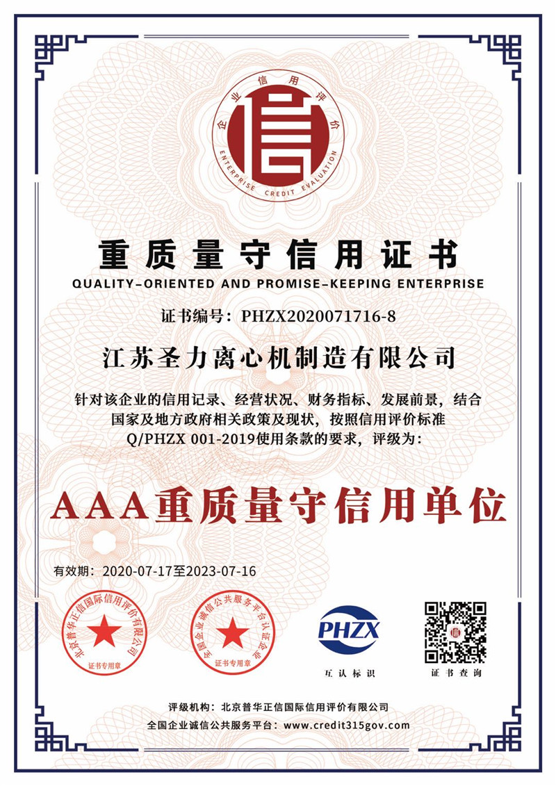 江蘇圣力離心機(jī)制造有限公司是國(guó)內(nèi)分離機(jī)械行業(yè)中主要的離心機(jī)生產(chǎn)企業(yè),對(duì)離心機(jī)的研究、設(shè)計(jì)、制造有多年的歷史,擁有齊全的設(shè)備、完善的檢測(cè)手段。公司已通過IS09000國(guó)際質(zhì)量體系認(rèn)證、ISO14001環(huán)境管理體系認(rèn)證、ISO45001:2018職業(yè)健康安全管理體系認(rèn)證和CE認(rèn)證,是江蘇省高新技術(shù)企業(yè),曾榮獲國(guó)家和地方多項(xiàng)榮譽(yù)稱號(hào)。